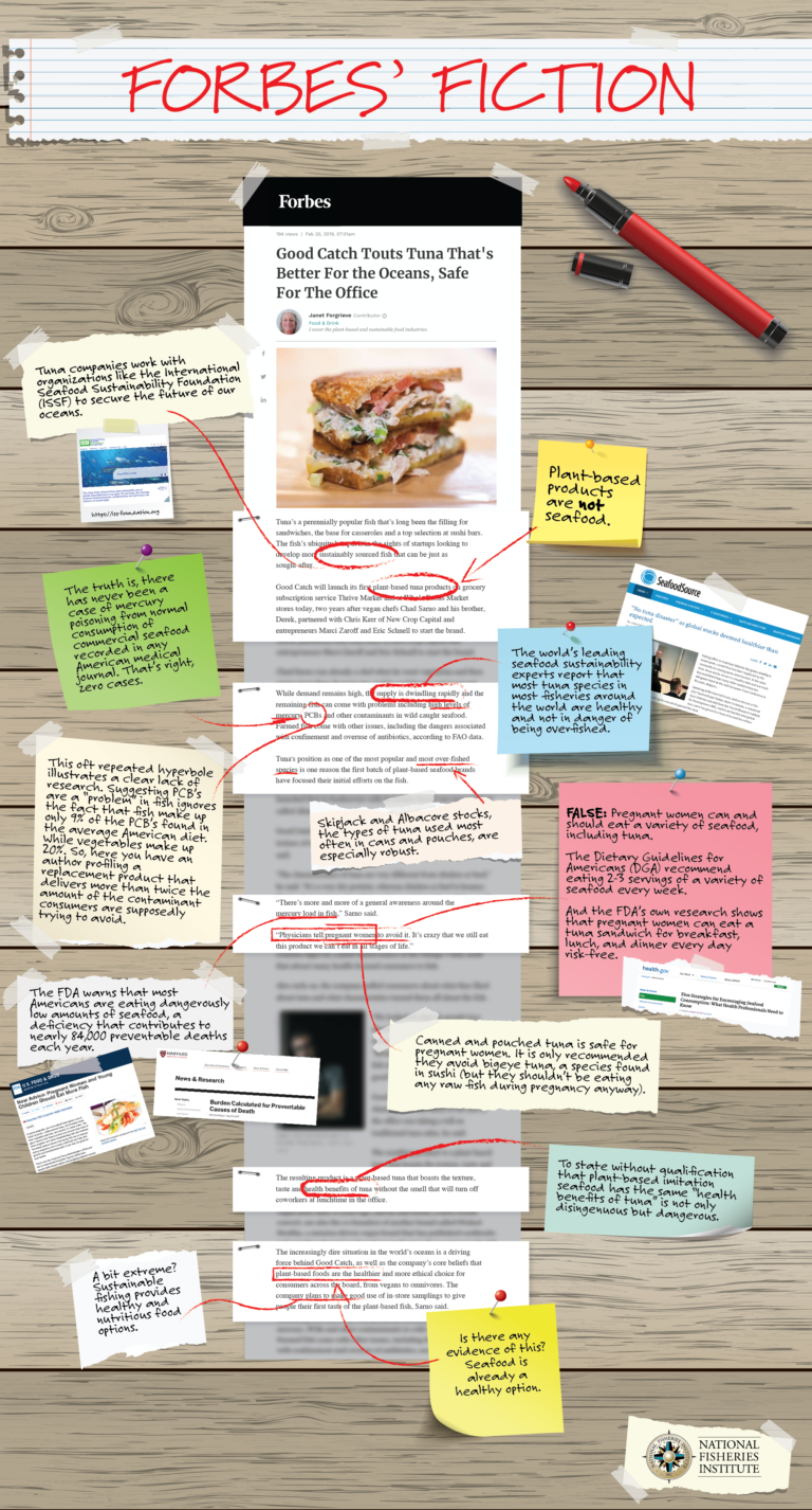 Broadcast news outlets that purport to give health or lifestyle advice have a responsibility to their readers to provide factual, accurate information. At a bare minimum, they should not blindly promote some product or life choice, while disparage alternatives, without covering all the relevant sides of the issue. The editorial team at Forbes and contributor Janet Forgrieve came up short on all scores in a recent piece [Good Catch Touts Tuna That’s Better For the Oceans, Safe For The Office; 2/20].